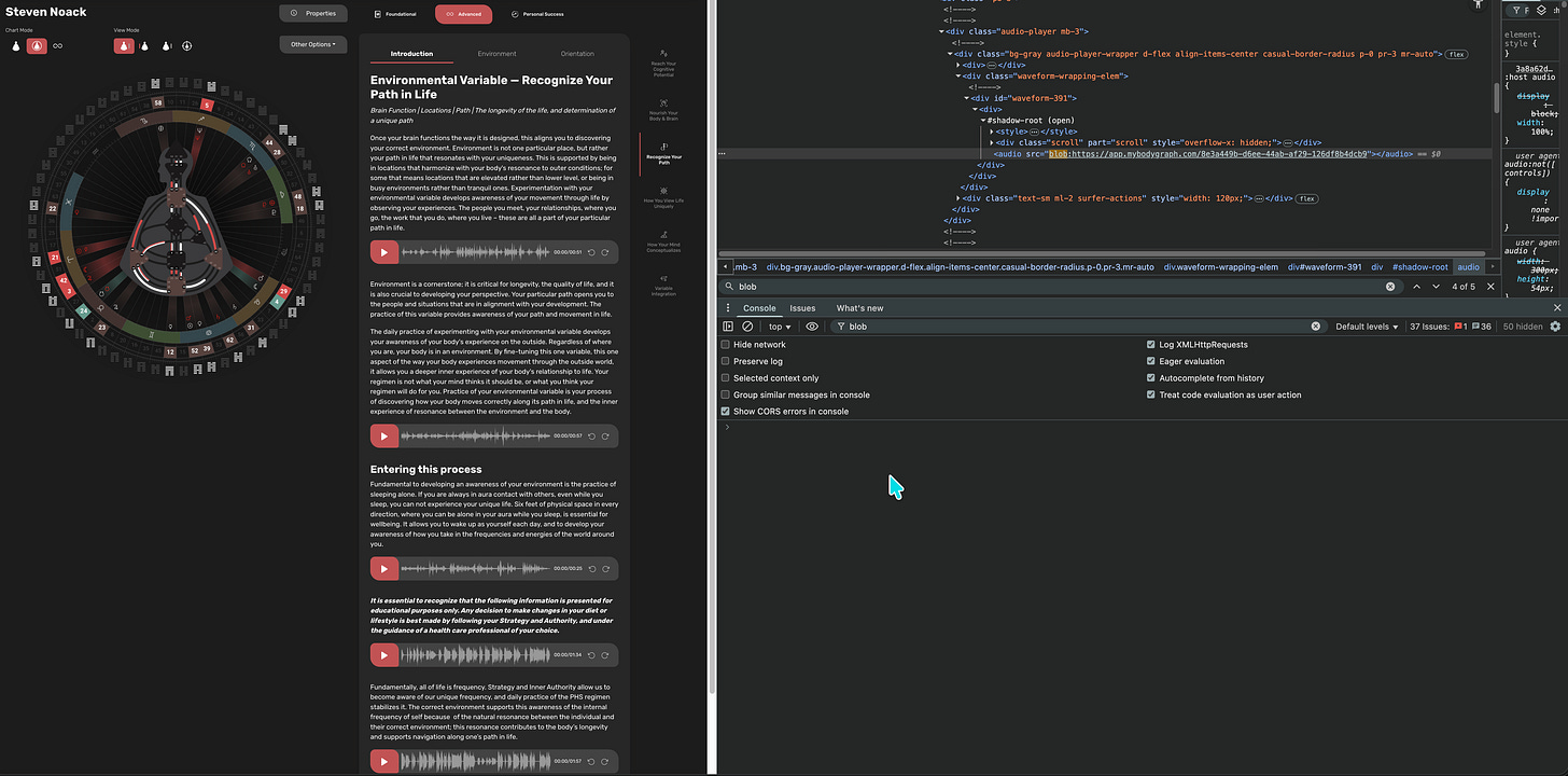 Also: DevTools auf. Shadow DOM durchsuchen. Blob-URL rauskopieren. Dann in die Console (ein anderer Bereich in den DevTools) wechseln. Code einfügen. Download starten. Repeat.